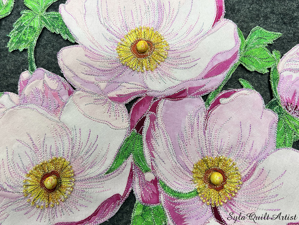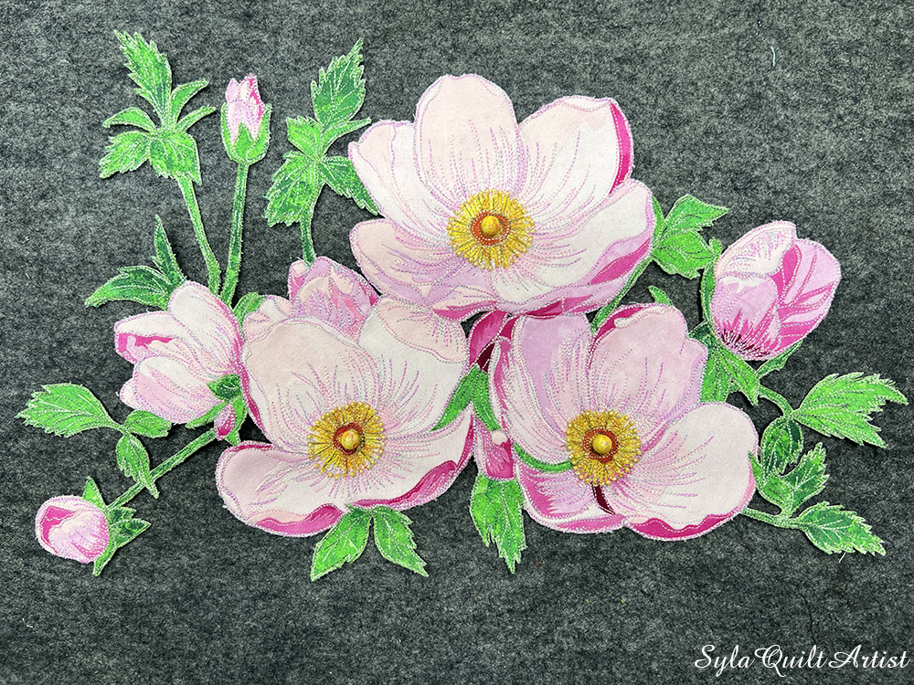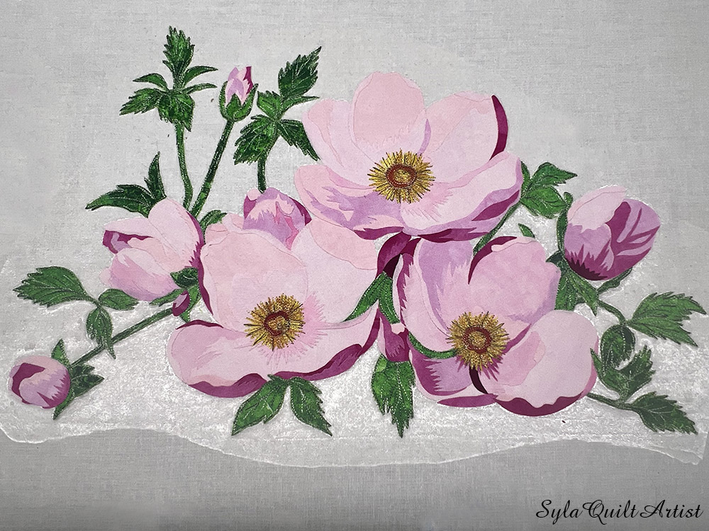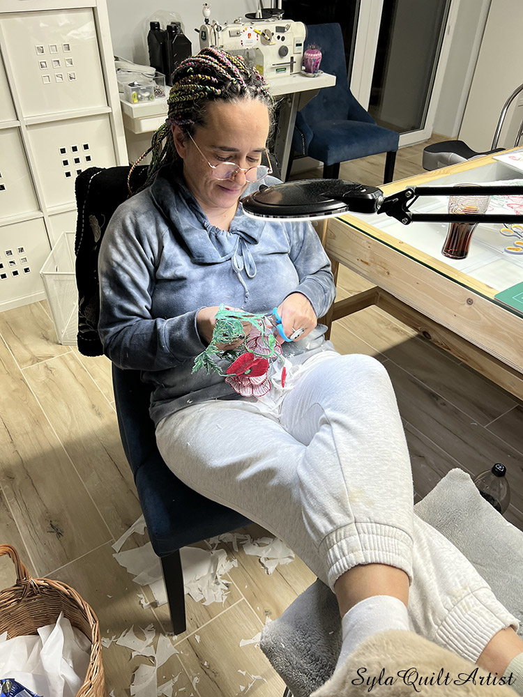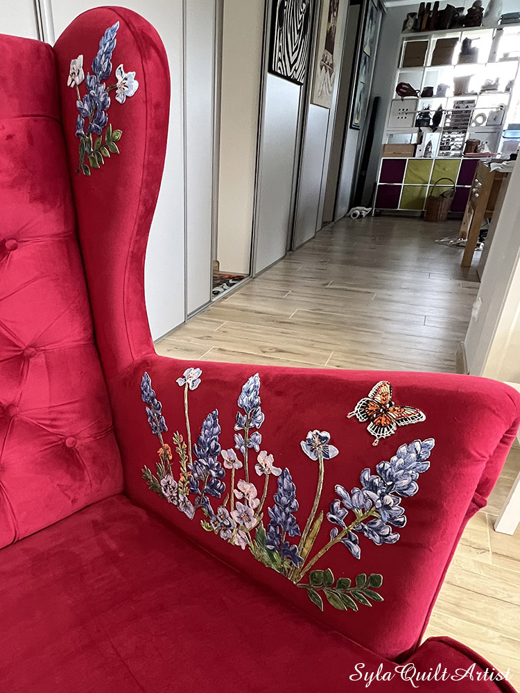 As part of the project “Art, Craft, Ecology – Unique Armchairs in the Gallery”, implemented and funded by the National Recovery and Resilience Plan (KPO), three exceptional armchairs were created — each different, each telling its own story. Their common thread was raw-edge appliqué, hand-cut and quilted on a long-arm machine, embellished with beads that add depth and sparkle to the floral motifs.