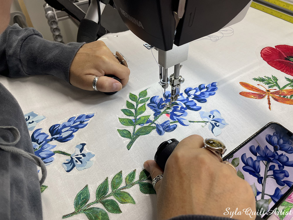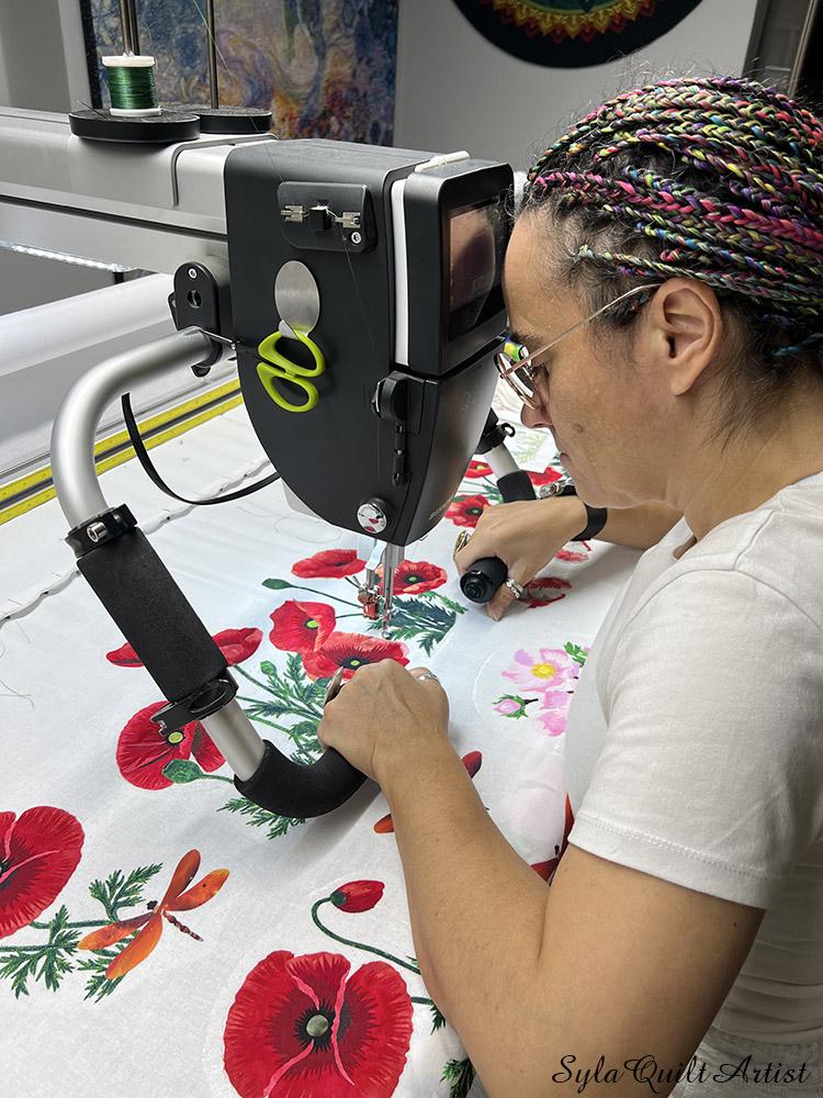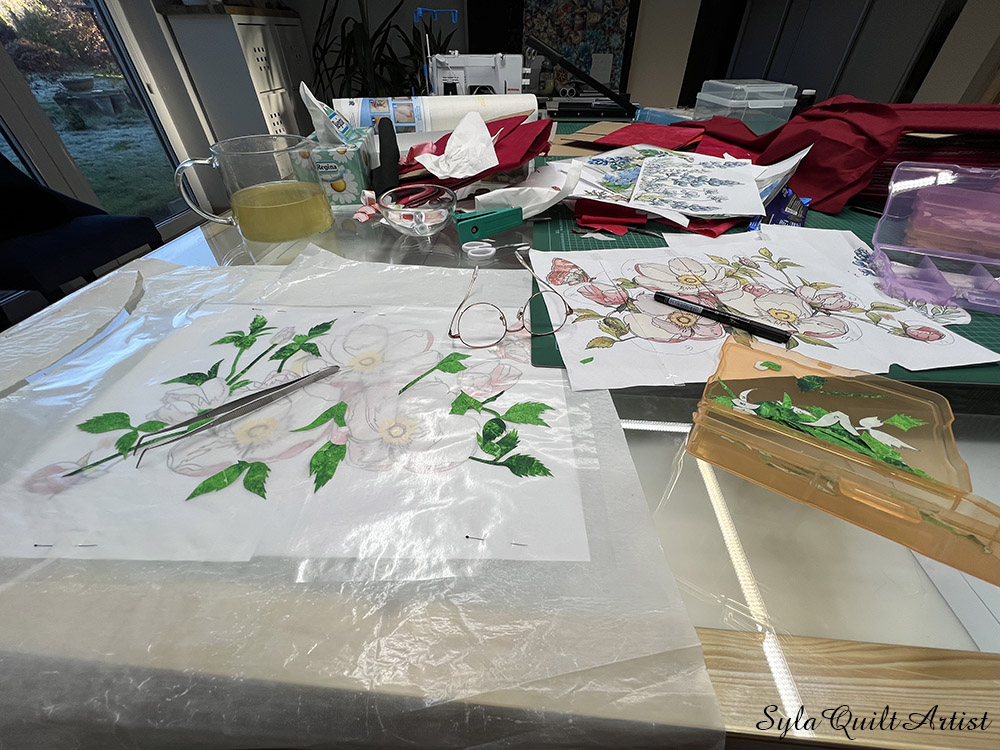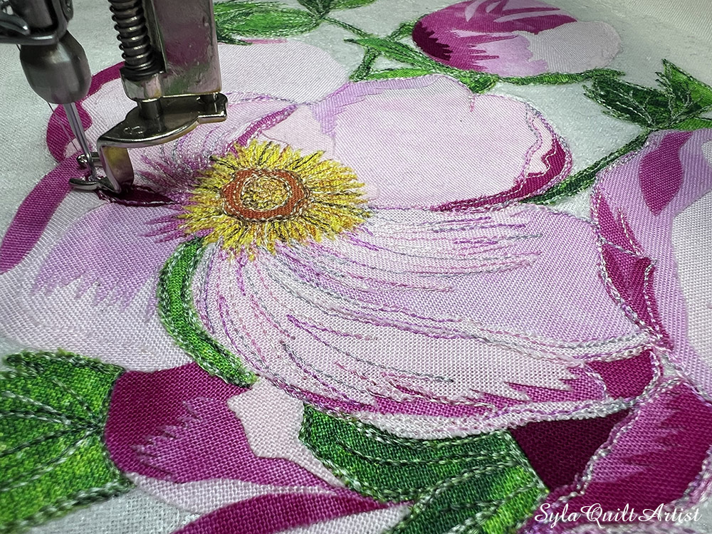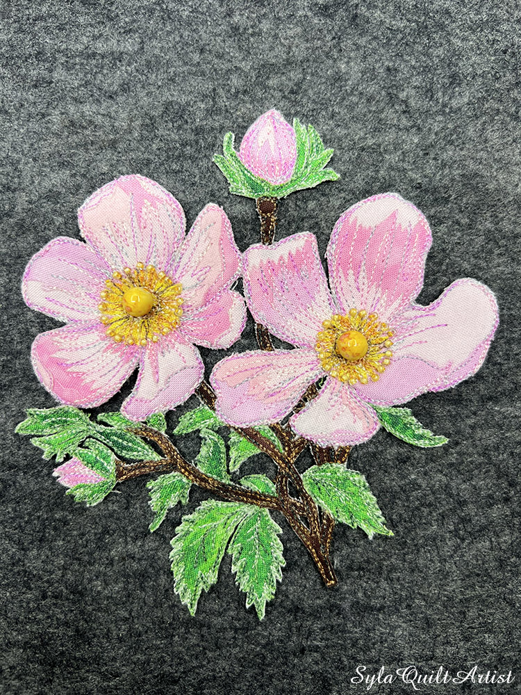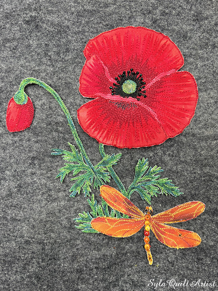 As part of the project “Art, Craft, Ecology – Unique Armchairs in the Gallery”, implemented and funded by the National Recovery and Resilience Plan (KPO), three exceptional armchairs were created — each different, each telling its own story. Their common thread was raw-edge appliqué, hand-cut and quilted on a long-arm machine, embellished with beads that add depth and sparkle to the floral motifs.