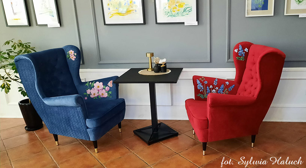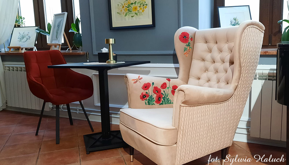 After completing the armchairs, the Podkarpacka Foundation for Cultural Development organized an educational meeting on November 7, 2025, at 2:00 PM at the Gallery with a Taste of Coffee INTERPIANO, ul. 3 Maja 15 in Sanok. I had the honor of speaking about ecological techniques in art, the idea of upcycling, and sustainable design.