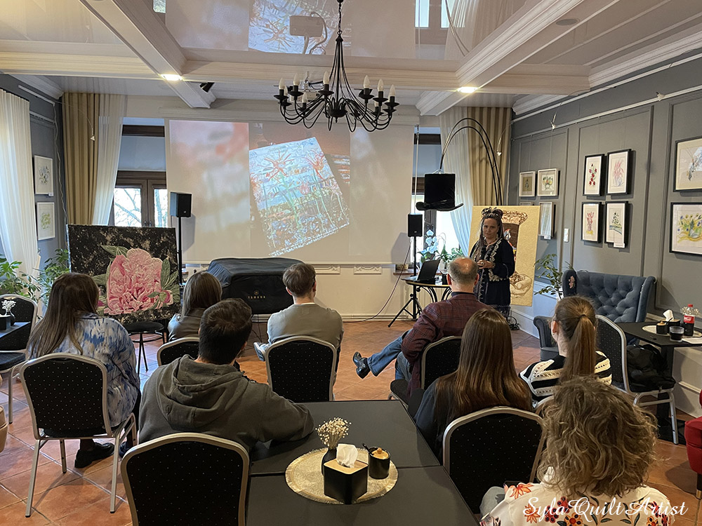 Podczas spotkania uczestnicy poznali praktyczne przykłady łączenia sztuki użytkowej z troską o środowisko. Na bazie techniki patchworku pokazałam, jak twórczo wykorzystać materiały z recyklingu i włączyć ekologiczne myślenie do współczesnego projektowania. To była piękna okazja do dzielenia się wiedzą, pasją i doświadczeniem.